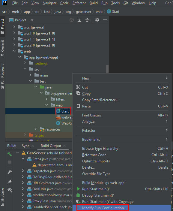 In order to sync the GeoServer execution with the new modules, from the Maven Projects