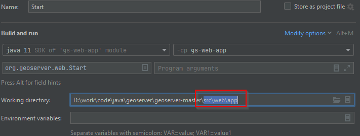 dialog open, fine tune the launch environment (including setting aGEOSERVER_DATA_DIR