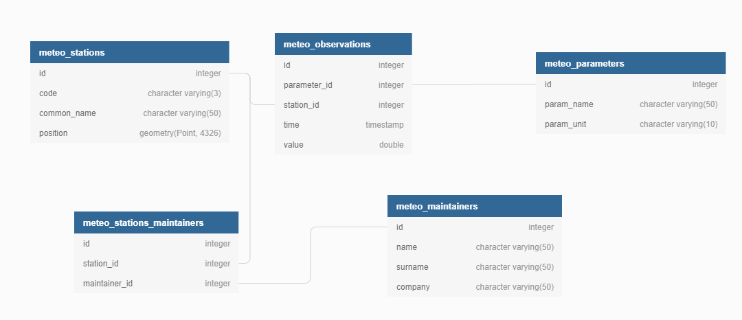 meteo_observationsand themeteo_parameterstables.