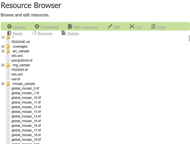 - Some cloud deployments of GeoServer operate without a data directory. In these environments the resource browser is used to manage items stored in a database or cloud storage rather than a file system.