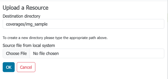 Upload uploads files to GeoServer. Select a directory to enable this tool.