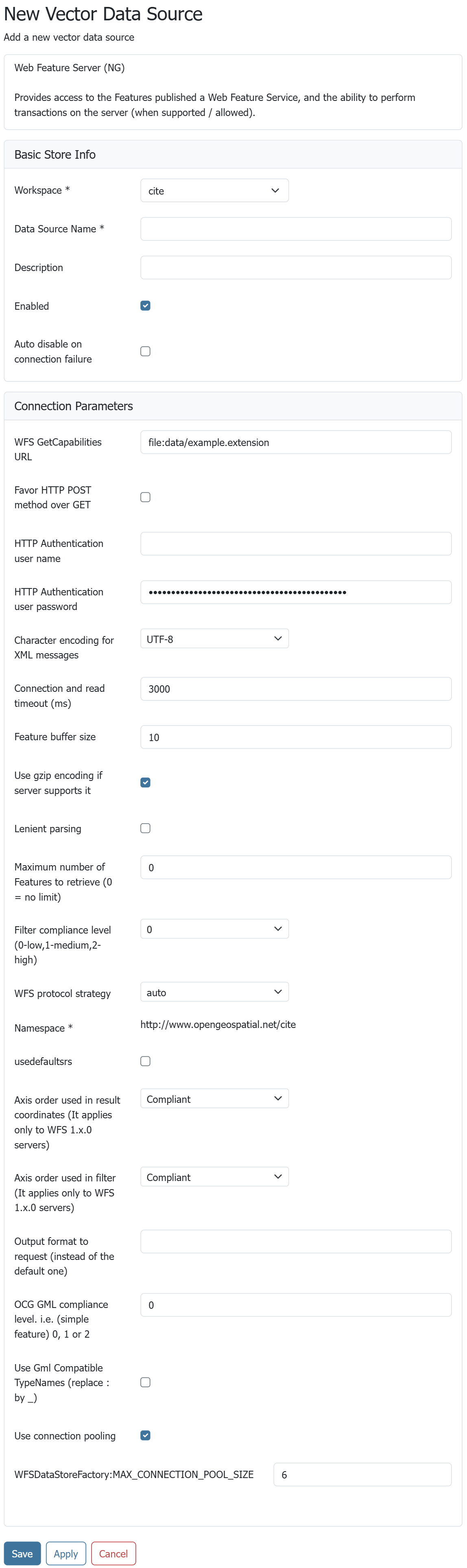 | Enabled | Enables the store. If disabled, no data from the external WFS will be served. |