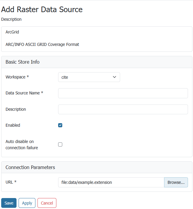Once the extension is properly installed ImagePyramid will be an option in the Raster Data Sources list when creating a new data store.