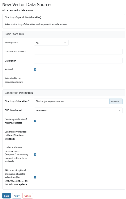 | Enabled | Enables the store. If disabled, no data in any of the shapefiles will be served. |