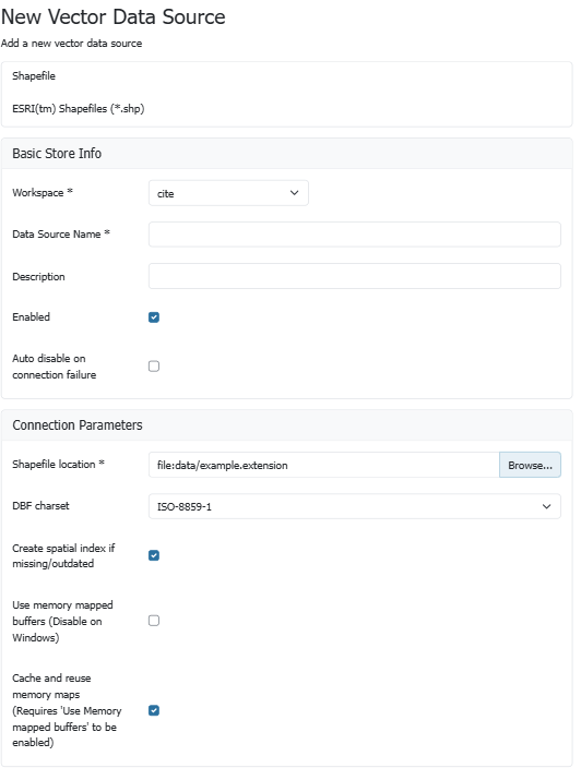| Enabled | Enables the store. If unchecked, no data in the shapefile will be served. |