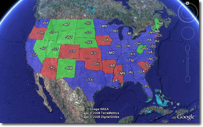 When Google Earth finishes loading you should be viewing a the topp:states layers.