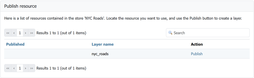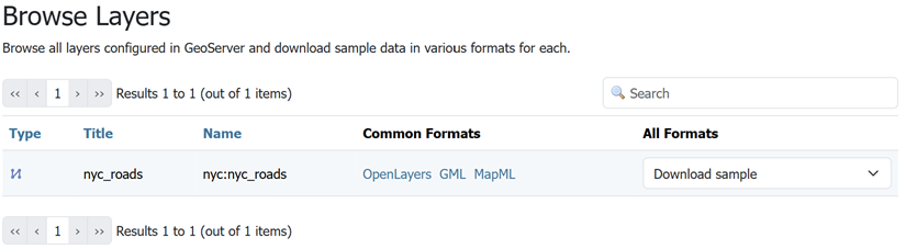 In order to verify that the nyc_roads layer is published correctly, we can preview the layer.