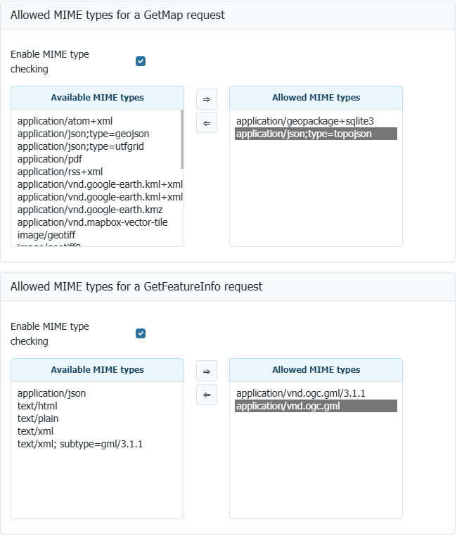 Restricting MIME types for GetMap and GetFeatureInfo requests¶