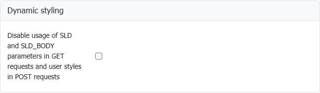 Disabling usage of dynamic styling in GetMap, GetFeatureInfo and GetLegendGraphic requests¶