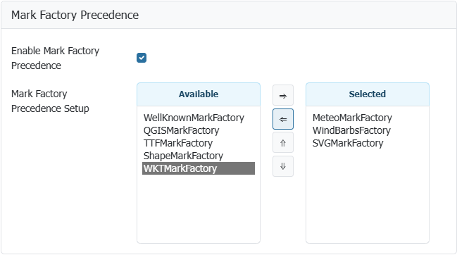 Mark Factory Precedence setup -The allowed mark factories to use and its execution order.