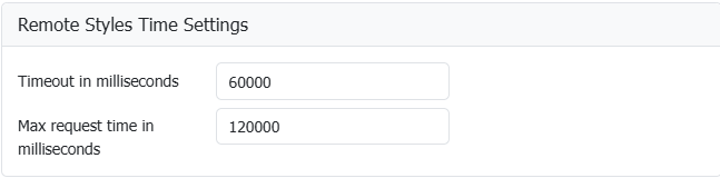 Remote styles max request time and connection timeout can be configured in milliseconds.