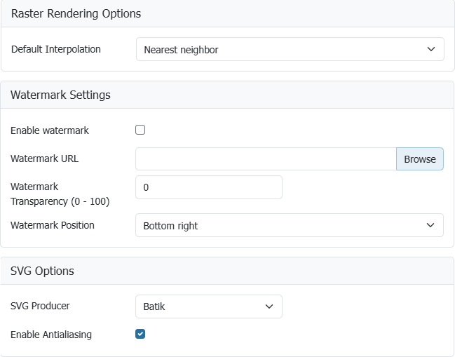 - Batik -Batik renderer (as it uses the Batik SVG Framework). It has full support for SLD styling, but is slower.