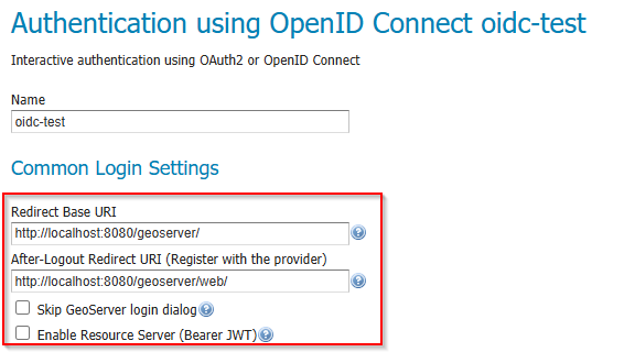 | Redirect Base URI | The public base URL of your GeoServer instance, ending with the context path (e.g. https://geoserver.example.com/geoserver). |