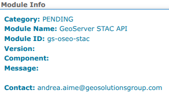 | Contact | For pending module, a contact email address for further information on how to help the module graduate. |