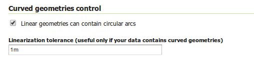 - Linear geometries can contain circular arcs should be checked to inform the GML encoder that the layer can contain circular arcs among other linear segments in the geometries, and thus use "gml:Curve" in place of "gml:LineString" in GML 3.1 output format. This is required because there is no quick way to know from the data sources if the linear geometries do contain circular arcs, and the choice of top level GML elements influences whether it is possible, or not, to represent circular arcs in their natural form.