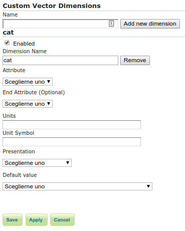 GeoServer also supports adding custom dimensions to vector layers, defining their names and configurations.