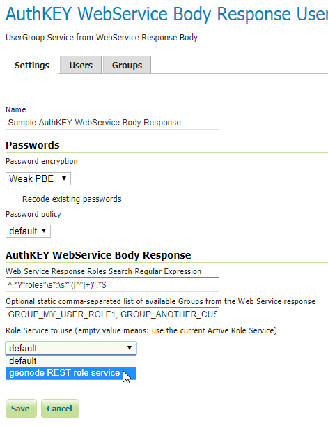 Once the new GeoServer UserGroup Service has been configured, it can be easily linked to the Key Provider Web Service Mapper.
