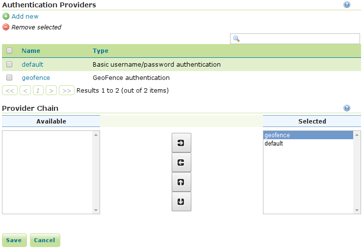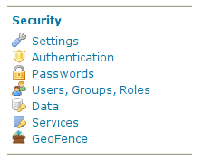 - In the security panel you'll find the GeoFence link to the GeoFence security admin page