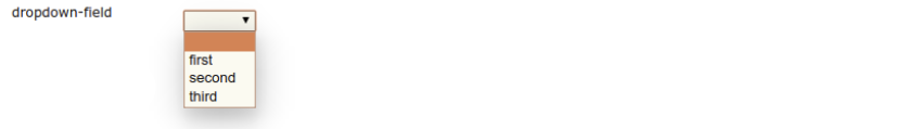 A field for selecting a value from a dropdown. The values can be configured with the values attribute in the yaml or they can be configured in an other .csv file which is used for dropdowns with a lot of choices.