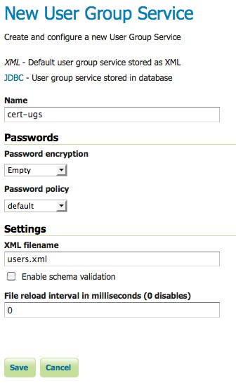 User group serviceand set the associated drop-down tocert-ugs