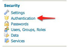 Click the Authentication link located under the Security section of the navigation sidebar.