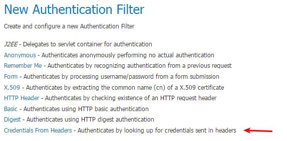 To properly parse the received credentials we need to use the Credentials From Request Headers Authentication Filter.