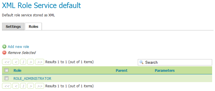 Clicking a role will allow its parameters to be changed, while clicking the Add new link will create a new role.