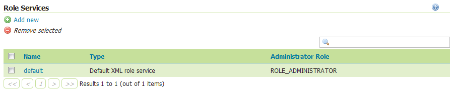 Once the new role service is added (either XML or JDBC), clicking it in the list of role services will allow the additional options to be specified, such as the roles associated with the service.