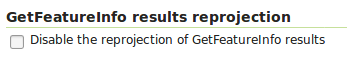 When the flag is checked, GetFeatureInfo requests results will not be reprojected and will instead used the layer coordinate reference system.