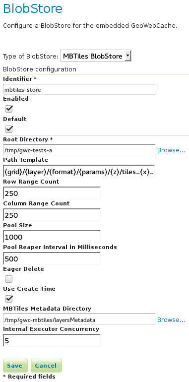 This plugin provides integration with GWC SQLite based blob stores. At the moment only one blob store of this type is available, the MBTiles blob store.