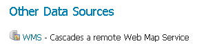 To connect to an external WMS, it is necessary to load it as a new store. To start, in the Web administration interface, navigate to Stores --> Add a new store --> WMS. The option is listed under Other Data Sources.