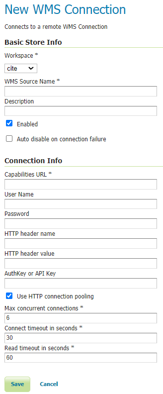 | Enabled | Enables the store. If disabled, no data from the remote WMS will be served. |