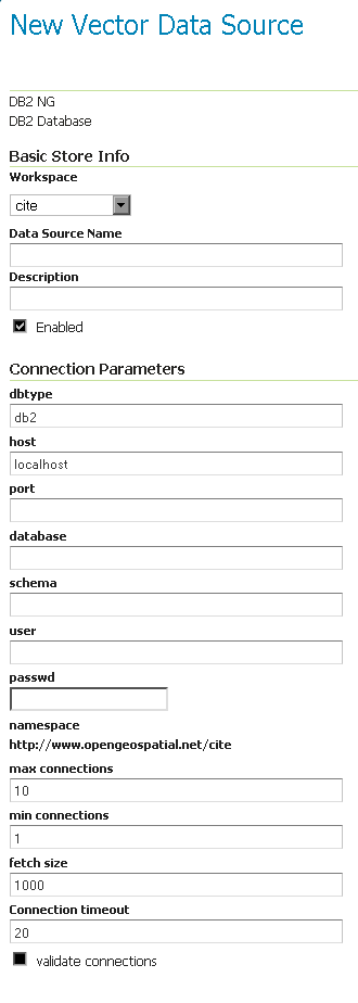 GeoServer does not come built-in with support for Db2; it must be installed through an extension. Proceed to Installing the Db2 extension for installation details.