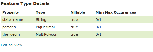 Once the query and the attribute details are defined, press Save. The usual New Layer configuration page will appear. If further changes to the view are required, the page has a link to the SQL View editor at the bottom of the Data tab: