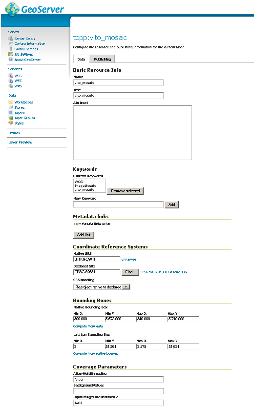 Configuring a coverage in GeoServer¶