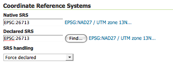 - Declared SRS---Specifies the coordinate system GeoServer publishes to clients
