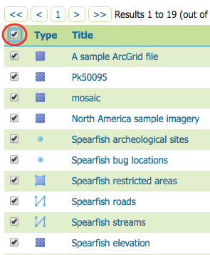 To remove a layer, select it by clicking the checkbox next to the layer. As shown below, multiple layers can be selected for batch removal. Note that selections for removal will not persist from one results page to the next.