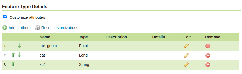 Some of the feature type edits might result in the layer not being editable anymore, for example, by removing an attribute that is marked as mandatory in the data source.