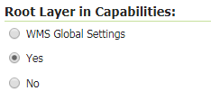 By default this behavior is inherited from the global WMS service settings (WMS Global Settings option). Finally, it is possible to override the service settings and force a Yes to always include the GeoServer root element.
