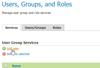 Security>Users, Groups, Rolesand selectAdd newfromUser Group Services