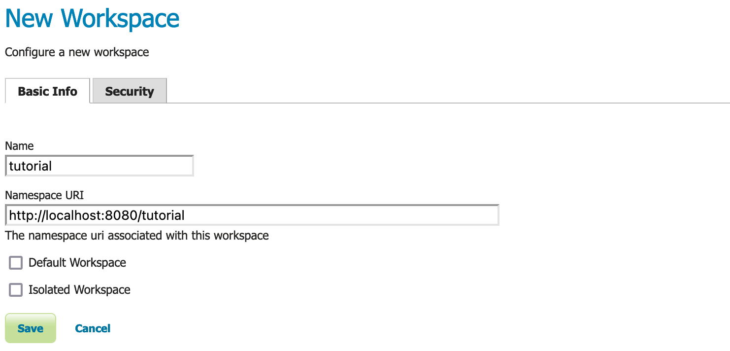 This step is optional if you'd like to use an existing workspace. Usually, a workspace is created for each project, which can include stores and layers that are related to each other.
