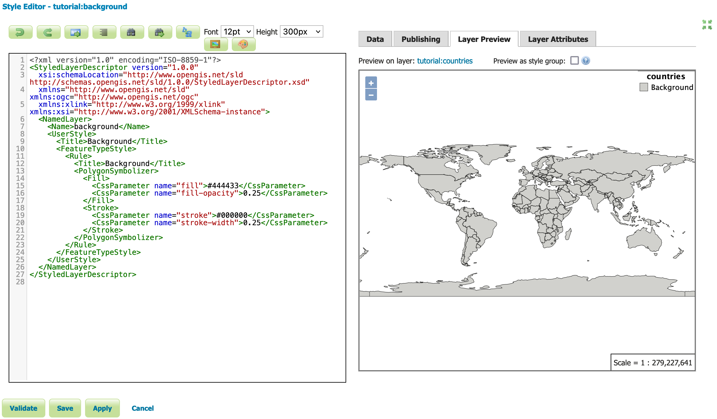 tutorial:countriesto use thetutorial:backgroundstyle the default for this layer.