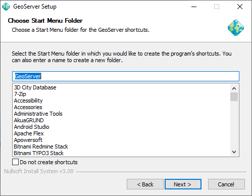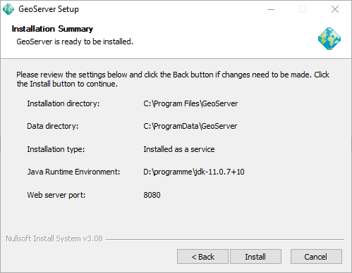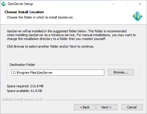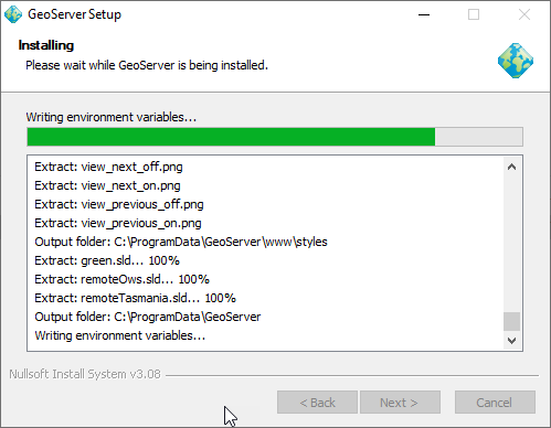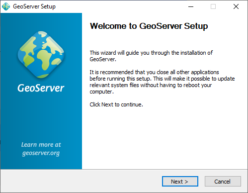 The Windows installer provides an easy way to set up GeoServer on your system, as it requires no configuration files to be edited or command line settings.