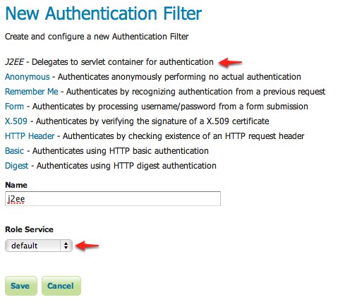 Configure the J2EE authentication filter¶