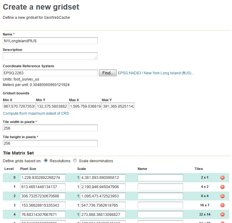 Given a custom named gridset called NYLongIslandFtUS, defined by a CRS of EPSG:2263 and using its full extent: